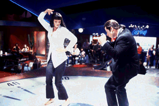 The dance competition is clearly influenced by Jean Luc Godard's 1964 film 'Bande A Parte' which Tarantino has named his production company after.